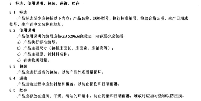 多功能公寓床的标志、使用说明、包装、运输和贮存